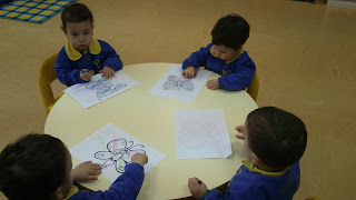 Nos encanta colorear y pintar con pincel...esta vez hemos hecho mariposas para nuestro mural de la primavera!
